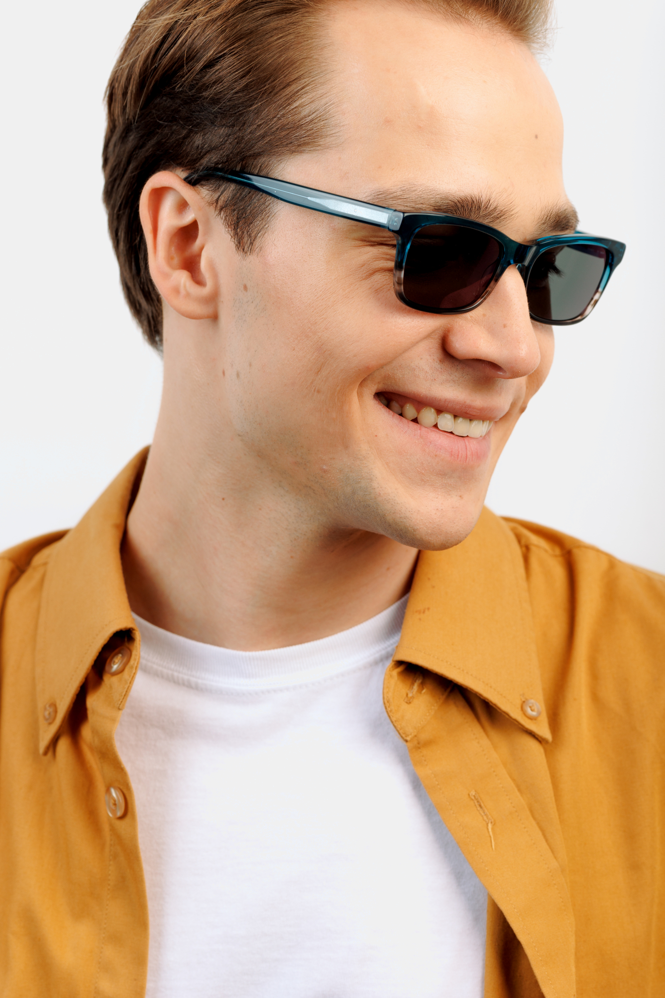 Большинство очков мы производим из ацетата целлюлозы итальянской компании Mazzucchelli. Этот гипоаллергенный материал намного прочнее обычного пластика, и к тому же позволяет добиться красивых оттенков.