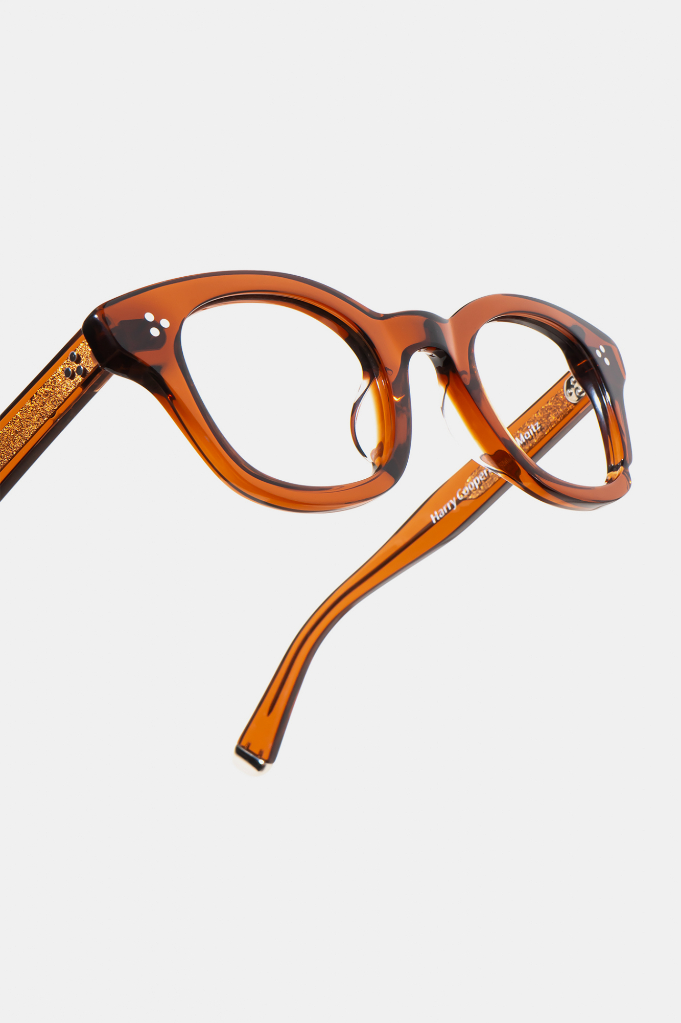 Большинство очков мы производим из ацетата целлюлозы итальянской компании Mazzucchelli. Этот гипоаллергенный материал намного прочнее обычного пластика, и к тому же позволяет добиться красивых оттенков.