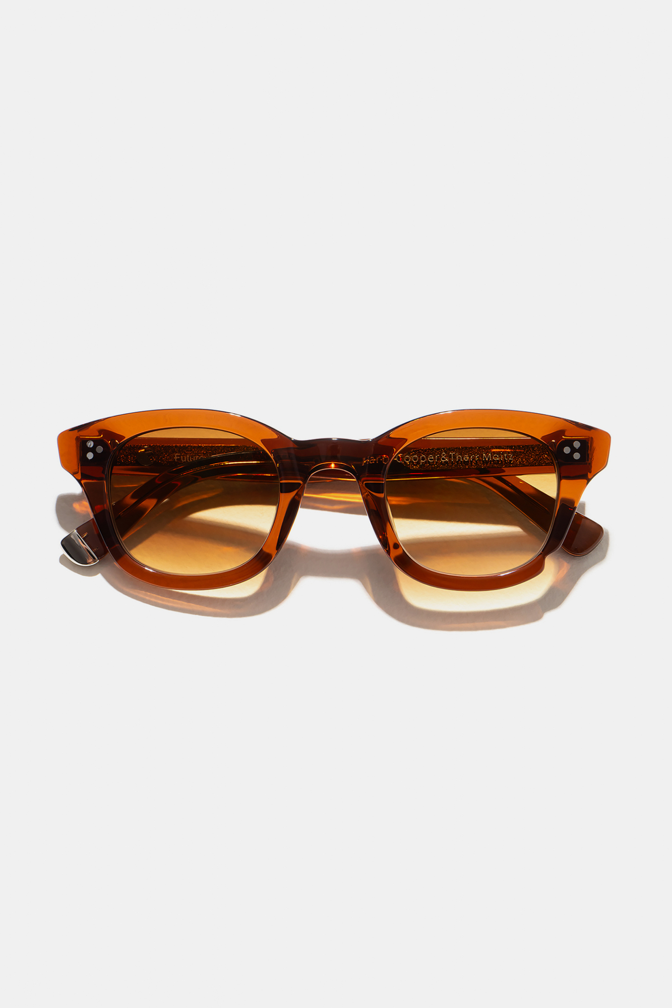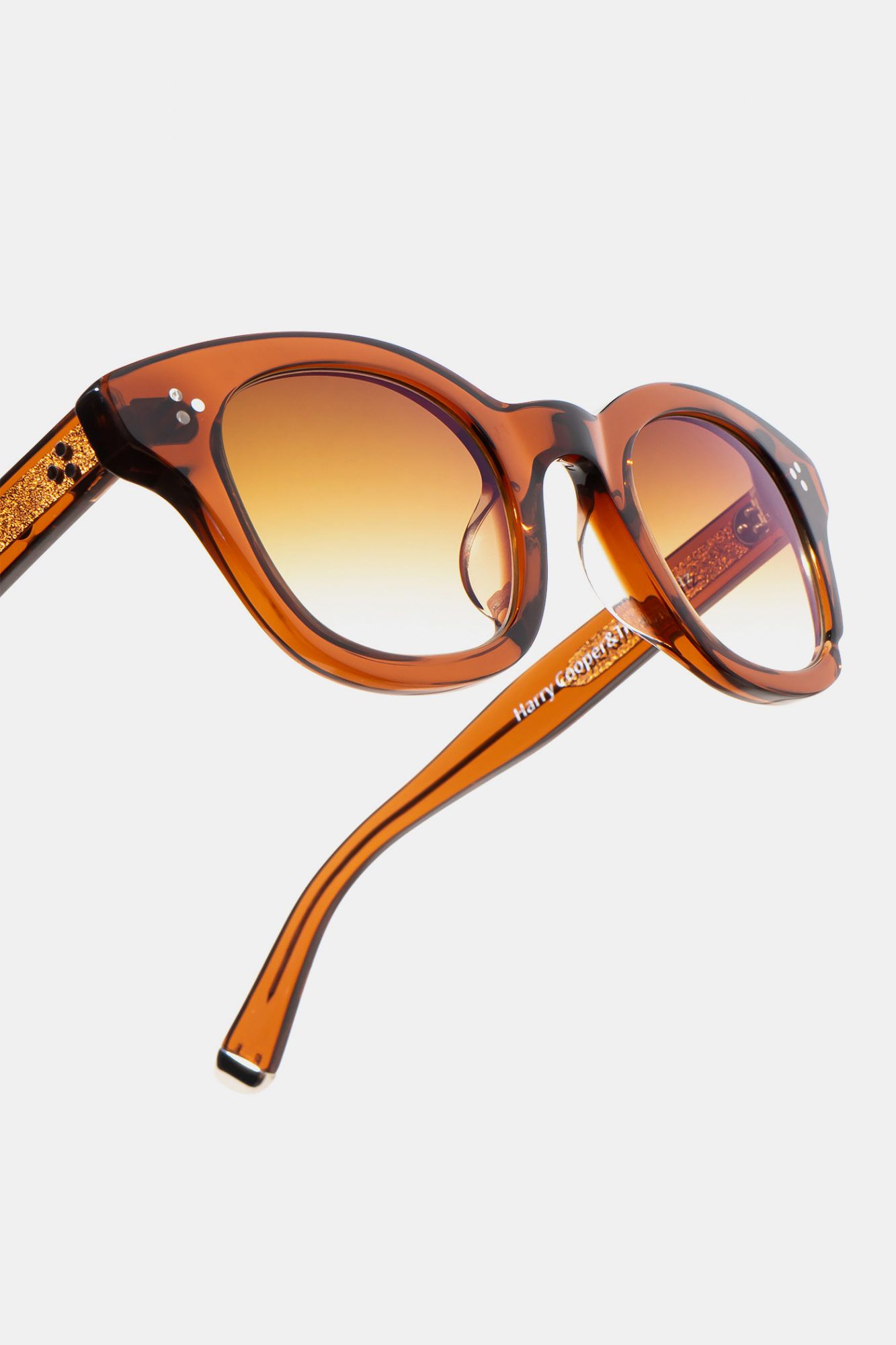 Большинство очков мы производим из ацетата целлюлозы итальянской компании Mazzucchelli. Этот гипоаллергенный материал намного прочнее обычного пластика, и к тому же позволяет добиться красивых оттенков.